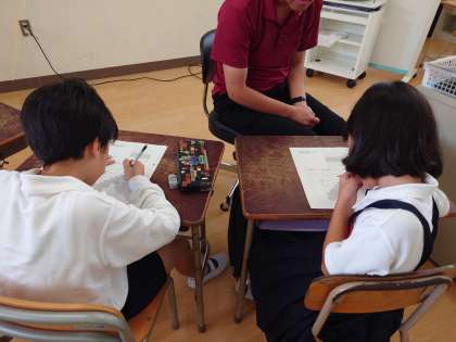 いくつかの約束事を考えながら迷路をするので、難しいようでしたが、がんばってチャレンジしていました。