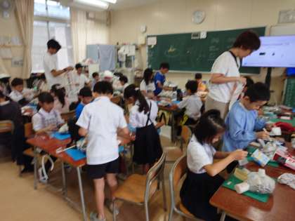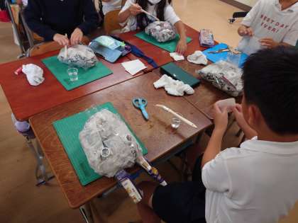和紙に水のりを付けて、ていねいに貼っていきます。