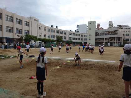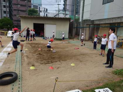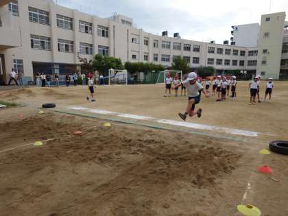 うまく跳べるように、ステップのリズムを考えながら何度も挑戦していました。
