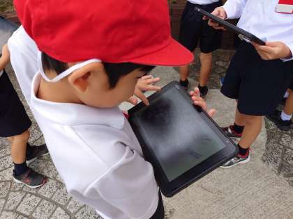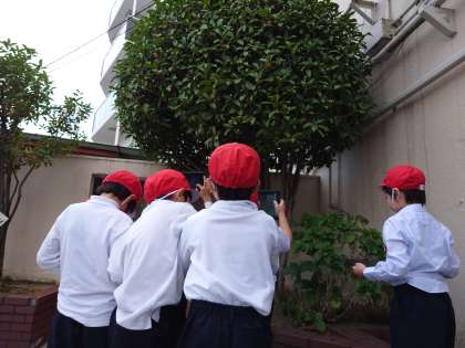 生活科の時間に、学校の中で、秋を見つけに行きました。