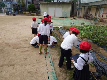 正門のところに咲いているキンモクセイや、学習園に植えている野菜を観察しました。
