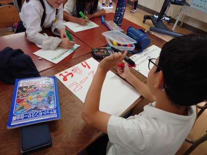 役割分担をして、案内板を作ったり、説明のセリフを考えたりしました。