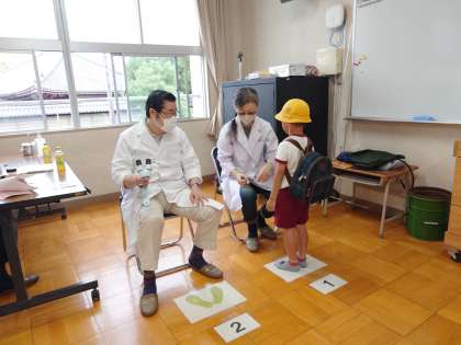 今日は、来年度就学予定の子どもたちの健康診断をしました。