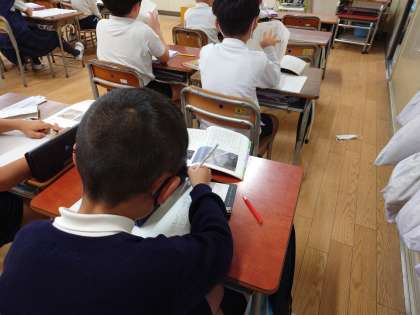 教科書の中から、大切な言葉を見つけて、うまくまとめられるようにしっかり考えていました。