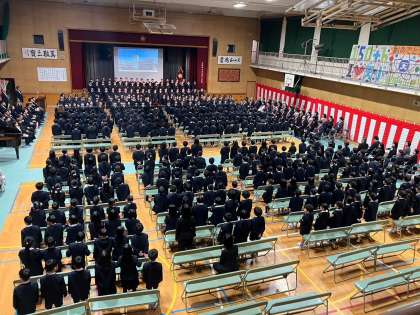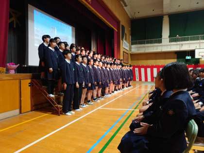 そして、6年生のお祝いの言葉続いて、全校合唱で「ぼくらのチカラ」を歌いました。