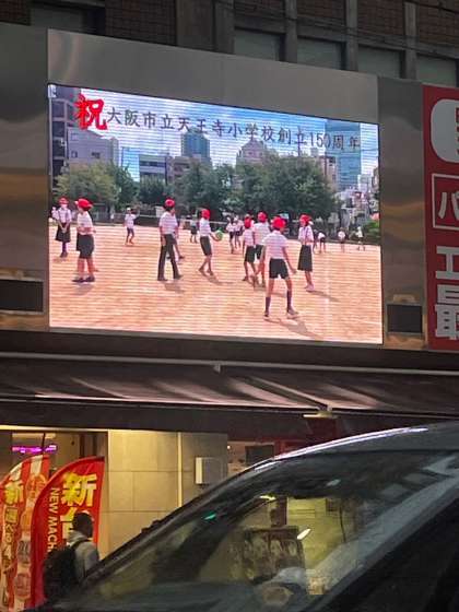JR天王寺駅北口を出たところから見えるオーロラビジョンで、創立150周年の記念CMを放送しています。
