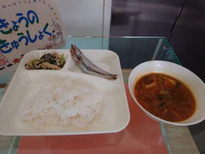 一見、カレーとシシャモのミスマッチを感じさせるメニューですが、カレーはだしの効いた和風味なので、食べると違和感がありません。