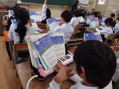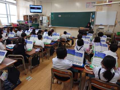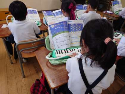音楽の時間に、「きらきらぼし」を歌ったりピアニカで演奏したりしました。