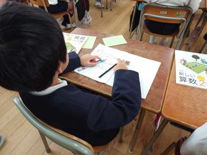 算数のかけ算の学習で、文章問題に取り組みました。