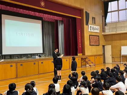 今日は11月11日ですが、校長講話は、ポッキーの話ではありません。