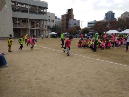 紅白対抗リレーでは、子どもたちがガチンコ勝負の熱戦を繰り広げました。