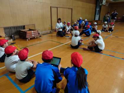 友だちとアドバイスし合ったり、自分の運動する姿を端末に収めたりしながら、より良い技の出来に向けて取り組んでいました。