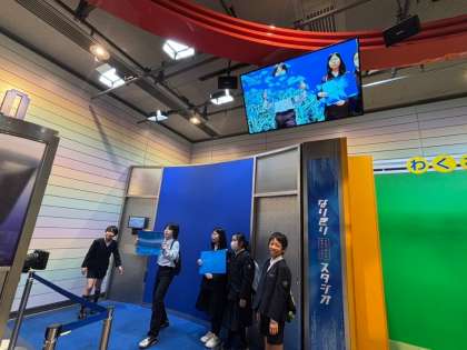 実際にテレビの撮影がされるセットを見学したり、ニュースのできる仕組みを体験したりしました。