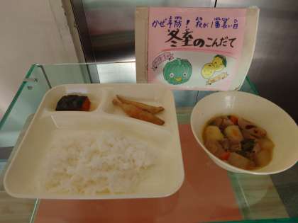 実際の冬至は21日(土)ですが、今日は冬至の行事献立で、かぼちゃが出ました。