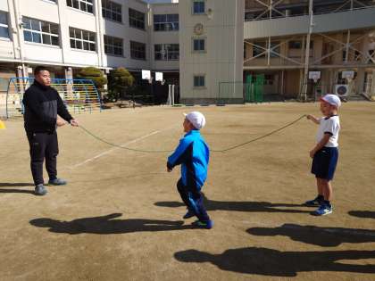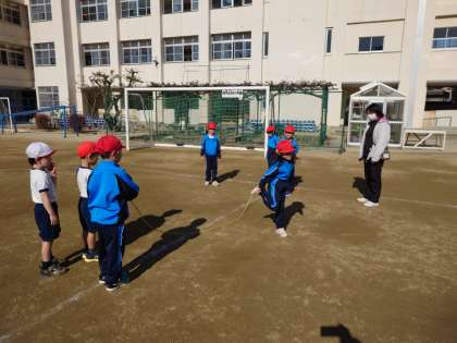 なわに入るタイミングが難しかったようですが、みんなすすんでチャレンジしていました。