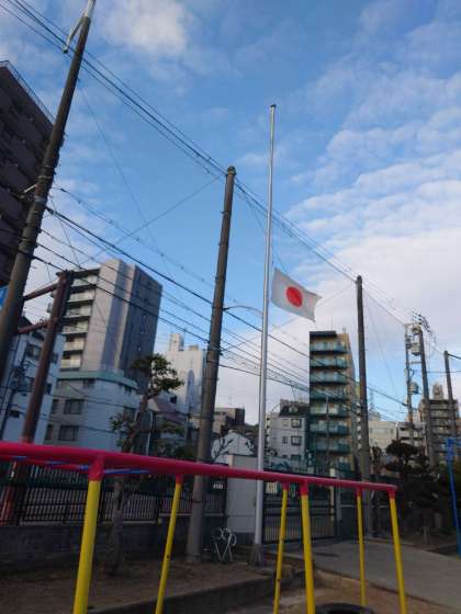 今日は、30年前の阪神淡路大震災を悼んで、半旗の掲揚をしています。