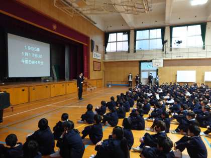 校長講話では、先週の金曜日に30年を迎えた阪神・淡路大震災について話しました。