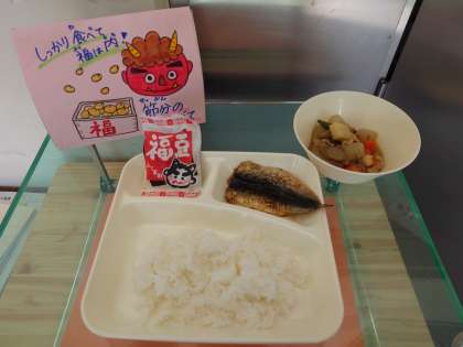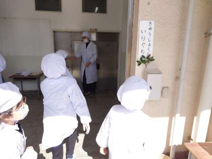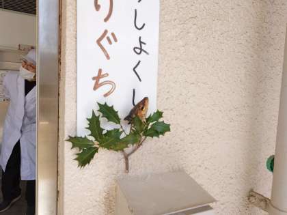 給食室の入り口には、柊鰯(ひいらぎいわし)が飾ってあります。