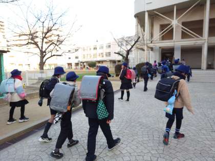 天王寺小学校は、体育科の会場になるので一部の学級を除き、13時頃に下校します。