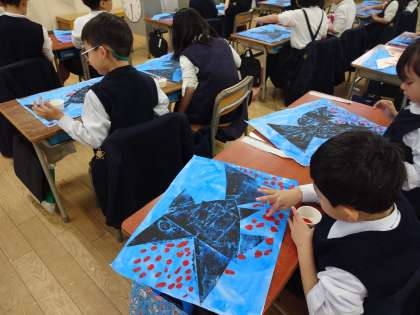 図画工作科の紙版画もだんだん完成に近づいてきました。