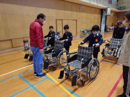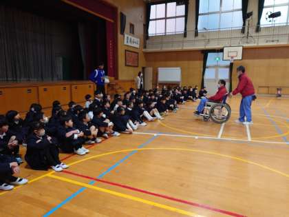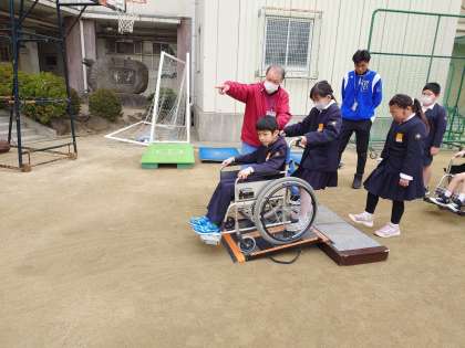 大阪市の心身障がい者リハビリテーションセンターの方を講師にお招きして、車いす体験の学習をしました。