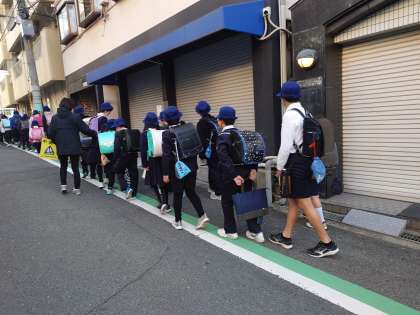 今日もたくさんの地域の方や保護者の皆さんに見守られて安全に登校することができました。