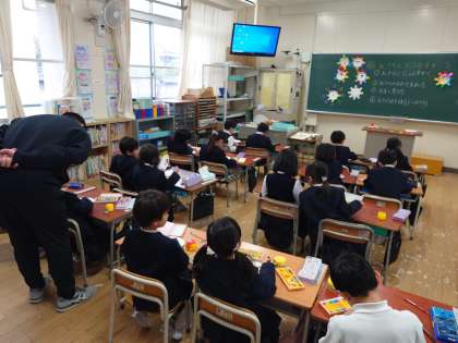 入学式に、新しい1年生を教室に迎え入れる時の掲示物を作りました。