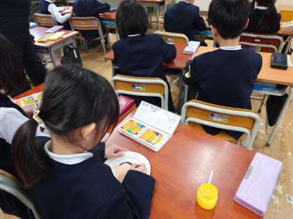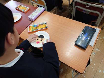 入学式での歓迎の催しと同じで笑顔で迎えられるように、一生懸命に描いていました。