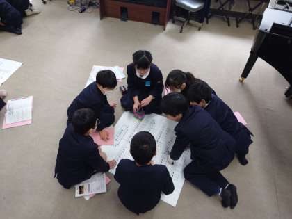 歌詞を味わい、歌詞に込められた思いをどのように表現すればよいかを、みんなで話し合いながら考えました。