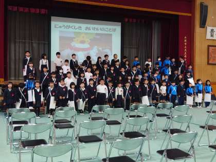 6年生の卒業式練習の合間をぬって、1年生も入学式の練習を頑張っています。