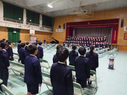 6年生に向かって、これまでのお礼と、これから最上級生を引き継ぐ決意を述べた後、歌の贈り物をしました。