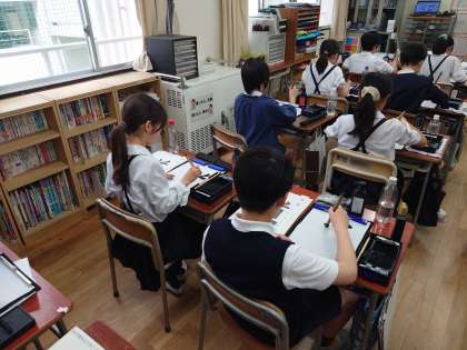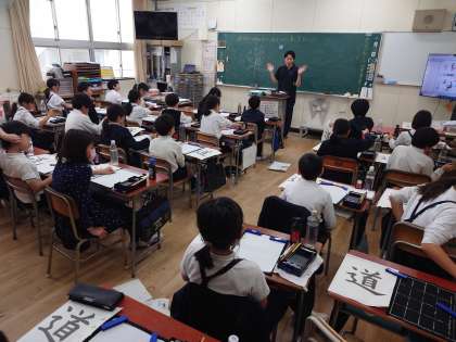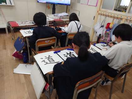 手本と比べて、どこを工夫すればよい書になるのかを考えて、2枚目を書いていきます。