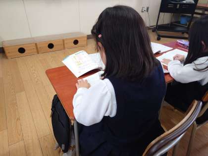 算数科の時間に、2けたのたし算でひっ算を習いました。