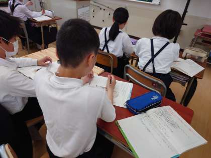 工夫する場所を書き込み、楽器の気持ちを考えながら音読することができました。