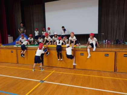 だんだんマットが積み重なって高くなりますが、みんなで協力しながら全員達成を目指していました。