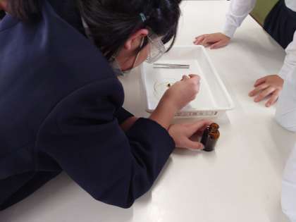 今日は、インゲンマメが発芽した後に、種の中の養分がどのように変化しているのかを調べました。