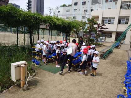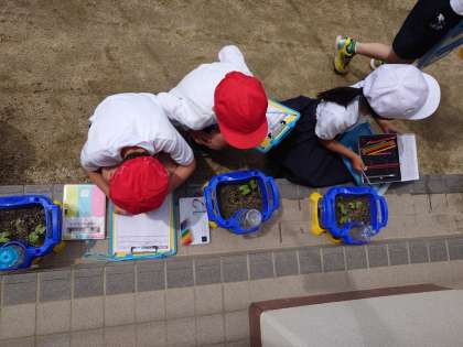 葉っぱをそっと触ってみて「ふわふわしてる!」と感想を言っていました。