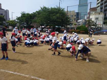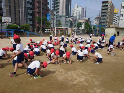 もともと天王寺小学校の運動場の表面はきめの細かい方ですが、それでも小さな礫はたくさんあります。