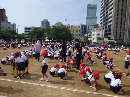 整列の練習後、みんなで整地作業をしました。