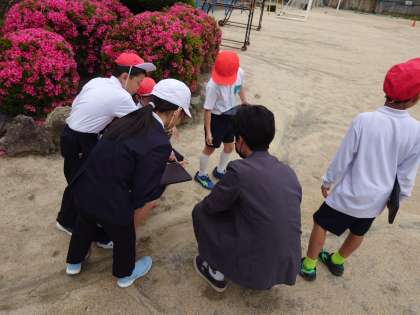 理科の学習で、水の流れ方と地面の傾きの関係を調べました。