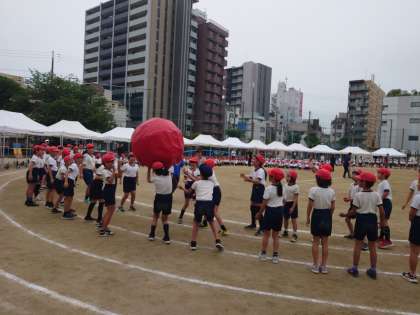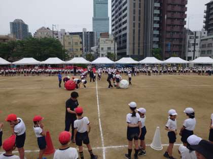 今日の全体練習は、応援合戦と大玉送りの練習です。