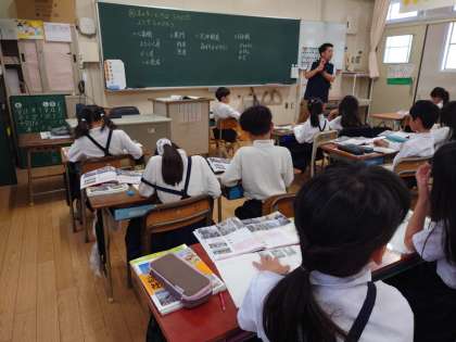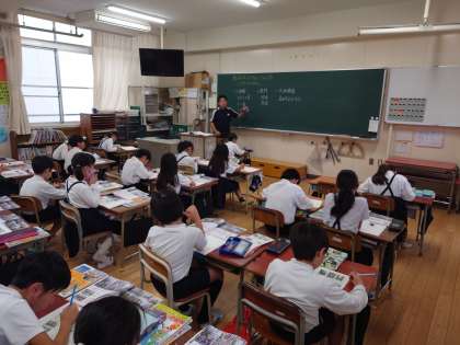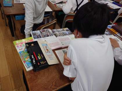 写真を手掛かりに、どんな種類のお店が集まっているのかを考えながら、商売のまちとしての大阪市を学習していました。