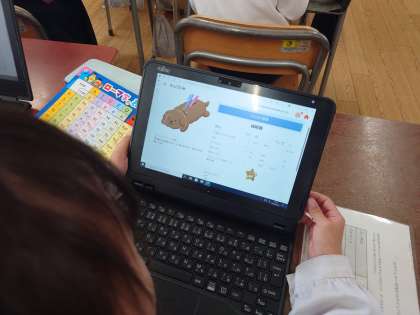 3年生でローマ字を習うのにあわせてタイピングソフトの「らっこたん」でタイピングの練習をしています。