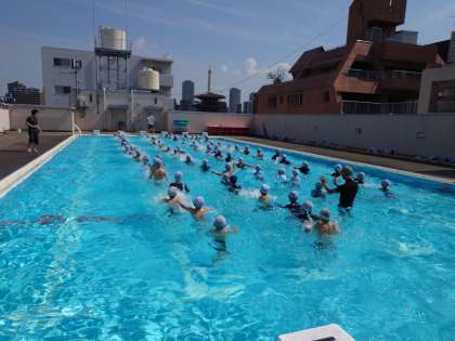 今年のプール水泳のトップバッターは、4年生です。