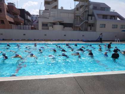まず、プールでのお約束を確認したり、準備体操をしたりしました。