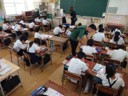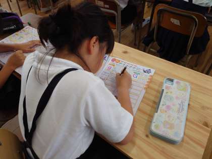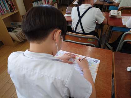 習ったあとは、ローマ字のおけいこに、ていねいに書いていました。