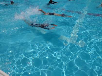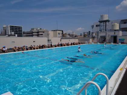 水慣れのあと、泳ぐ力を確かめながら、25mの縦コースを泳ぎました。