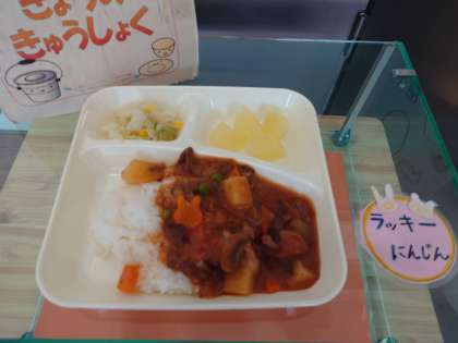 今日のハヤシライスのラッキー人参は、うさぎの形です。