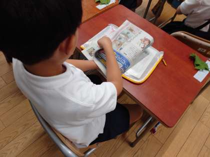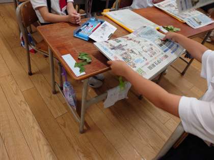 寄付されたこども新聞を後ろの人に回すときにみんな「はい、どうぞ。」と言って渡していました。