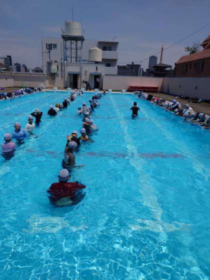 安全教育の一環で、着衣泳をしました。